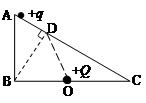1、填空题 倾角为30°的直角三角形底边长为2l,底边处在水平位置,斜边为光滑绝缘导轨。现在底边中点O处固定一正电荷Q,让一个质量为m、带正电的点电荷q沿斜边顶端A滑下(不脱离斜面)。测得它滑到斜边上的垂足D处时速度为υ,加速度为a,方向沿斜面向下。该点电荷滑到斜边底端C点时的速度υc=__________,加速度ac=__________。(重力加速度为g)