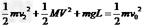 (2)若解除锁定,设小球通过最高点时的速度为v2,此时滑块的速度为V 。小球和滑块起始状态沿在水平方向初速度均为零,在上升过程中,因系统在水平方向不受外力作用,水平方向的动量守恒。以水平向右方向为正方向,有