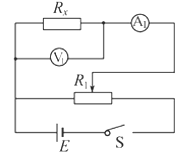 ,而电压表V的量程15 V,电压表的量程太大,测量电流表的电压误差较大,故电压表不能使用,电流表A2的内阻未知,也不能充当电压表,只能让定值电阻R0充当电压表,与电流表A1并联,再与电流表A2串联;又因题设要求电流表A1的示数从零开始变化,且多测几组数据,尽可能的减少误差,所以滑动变阻器必须采用分压式接法,滑动变阻器应选R1,电路如图所示。