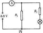 (4)将本实验用的小灯泡接入如图丙所示的电路,电源电压恒为6.0 V,定值电阻R1=30 Ω,电流表(内阻不计)读数为0.45 A。根据你描绘出的小灯泡的伏安特性曲线,此时小灯泡消耗的实际功率约为_____________W(保留两位有效数字)。