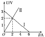 2、选择题 在如图所示的U-I图象中,直线Ⅰ为某一电源的路端电压与电流的关系图象,直线Ⅱ为某一电阻R的伏安特性曲线。用该电源直接与电阻R相连组成闭合电路。由图象可知
