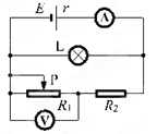 4、选择题  如图所示的电路中,电源的电动势E和内阻r恒定不变,变阻器R1的滑片P处在如图位置时,电灯L正常发光。现将滑片P向右移动,则在该过程中(? )