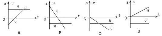 5、选择题 如图所示,每一个图都有两条图线,分别表示同一直线运动过程中的加速度和速度随时间变化的图象,其中哪些图对应的运动不能实现?(? )