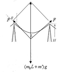 ,塔基宽度为d。相邻铁塔间输电线的长度为L,其单位长度的质量为