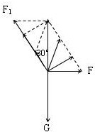 点评:本题物体平衡中极值问题,关键是确定极值条件,本题采用图解法得到力最小的条件,也可以运用数学函数法求解极值.