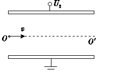 4、计算题 如图所示,某带电的液滴,以某一初速度沿中线飞入水平放置的平行板电容器两极板中间,不加偏转电压时,液滴刚好落到板中点,当加偏转电压U0时,液滴恰好能沿初速度方向匀速穿过电场区域,欲使液滴能飞出偏转电场,求偏转电压U的取值范围。