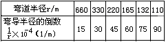 参考答案:(1)每个弯道的轨道半径的倒数,如小表:
