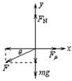 本题解析:木块匀速运动时受到四个力的作用:重力mg、推力F、支持力FN、摩擦力F?.沿水平方向建立x轴,将F进行正交分解,如图所示。