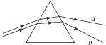 5、选择题 如图,a和b都是厚度均匀的平玻璃板,它们之间的夹角为φ.一细光束以入射角θ从P点射入,θ>φ.已知此光束由红光和蓝光组成.则当光束透过b板后( )