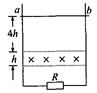4、简答题 如图所示,一宽度为L的光滑金属导轨放置于竖直平面内,质量为m的金属棒ab沿金属导轨由静止开始保持水平自由下落,进入高h、方向垂直纸面向里、磁感应强度为B的匀强磁场区域。设金属棒与金属导轨始终保持良好接触,ab棒穿出磁场前已开始做匀速运动,且ab棒穿出磁场时的速度为进入磁场时速度的