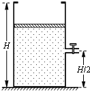 4、简答题 如图所示,高为H=60cm的气缸竖直放置在水平地面上,内有一质量为m=5kg、横截面积为S=25cm2的活塞.气缸的顶部装有卡环,可以阻止活塞离开气缸,气缸的右侧正中央安装一阀门,阀门细管直径不计.现打开阀门,让活塞从气缸顶部缓缓下降直至静止,气体温度保持t0=27℃不变,不计活塞与气缸间的摩擦,大 气压强p0=1.0×105Pa.求: