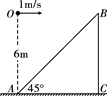 3、简答题   4、选择题  如下图所示,三个小球从同一高处的O点分别以水平初速度v1、v2、v3抛出,落在水平面上的位置分别是A、B、C,O′是O在水平面上的射影点,且O′A∶AB∶BC=1∶3∶5.若不计空气阻力,则下列说法正确的是(  ) 5、选择题  如图,斜面与水平面之间的夹角为45°,在斜面底端A点正上方高度为6 m处的O点,以1 m/s的速度水平抛出一个小球,飞行一段时间后撞在斜面上,这段飞行所用的时间为(g="10" m/s2) |