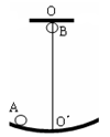 4、计算题 如图所示,在O点系着一细绳,细绳穿过小球B的通过直径的小球,使B球能一直顺着绳子滑下来。在O点正下方有一直径为R的光滑弧形轨道,圆心位置恰好在O点,弧形轨道的最低点为O′。在接近O′处有另一小球A,令A、B两球同时开始无初速度释放。假如A球到达平衡位置时正好能够和B球相碰,则