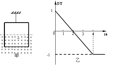 参考答案:B 本题解析: 磁感线的疏密程度表示B的大小,但安培力的大小 除跟该处的B的大小和I、L有关外,还跟导线放置的方向与B的方向的夹角有关,故C、D错误;由a、b两处磁感线的疏密程度可判断出Bb>Ba,所以B正确. 本题难度:一般 5、计算题  轻质细线吊着一质量为m=3kg,边长为L=1m、匝数n=10的正方形线圈总电阻为r=1Ω.在框的中间位置以下区域分布着矩形匀强磁场,如图甲所示.磁场方向垂直纸面向里,大小随时间变化如图乙所示.求: 参考答案:(1)0到4s电流的方向为顺时针方向 ,4s后没有电流(2)6.25W 本题解析:(1)由法拉第电磁感应定律知道:0到4s电流的方向为顺时针方向 ,4s后没有电流 本题难度:一般 |