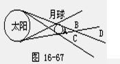 (3)某公园有一水池,水面下某处有一光源,在水面上形成一个半径为3m的圆形亮斑,已知水的折射率n=  。求:(本题的计算结果可带根号) ①光源的深度; ②光从光源传到水面的最短时间。  参考答案:(1)BC;(2)横波? 6;(3)① 本题解析:(1)由图可知,a光的偏折程度比b光大,则na>nb,由v= 本题难度:简单 3、选择题  如图为发生日食现象时太阳、月球位置示意图,A、B、C、D为四个影区,则[ ?] 参考答案:BC 本题解析:太阳光全都照不到的地方看到的是日全食,一部分光照到的地方看到的是日偏食,只有边缘的光照的地方看到的是日环食,所以BC对。 本题难度:简单 4、选择题  为了连续改变反射光的方向,并多次重复这个过程,方法之一是旋转由许多反射面组成的多面体棱镜(简称镜鼓),如图所示.当激光束从固定方向入射到镜鼓上的一个反射面上时,由于反射镜绕垂直轴旋转,反射光就可在屏幕上扫出一条水平线.依此,每块反射镜都将轮流扫描一次.如果要求扫描的范围θ=45°且每秒钟扫描48次,那么镜鼓的反射镜面数目和镜鼓旋转的转速分别为(    ) |