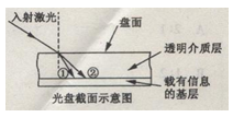 5、选择题  光盘上的信息通常是通过激光束来读取的。若激光束不是垂直入射到盘面上,则光线在进入透明介质层时会发生偏折而改变行进方向。如图所示为一束激光(红光、蓝光混合)入射到光盘盘面上后的折射情况,据此下列判断中正确的是(?)