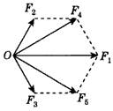 4、填空题 如图所示,有五个力作用于同一点O,表示这五个力的有向线段恰构成一个正六边形的两邻边和三条对角线。已知F1=10 N,则这五个力的合力大小为______N