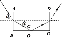 另一条光线沿直线进入玻璃,在半圆面上的入射点为B,入射角设为θ1,折射角设为θ2