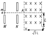 ![]() 2、计算题 电子(不计重力)自静止开始经M、N板间(两板间电压为u)的电场加速后从A点垂直于磁场边界射入宽度为