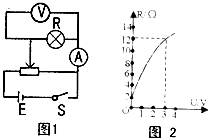 (2)根据实验数据,计算并描绘出R-U的图象如图2所示,由图象可知,此灯泡在不工作时,灯丝电阻为______;当所加电压为3.00V时,灯丝电阻为______,灯泡实际消耗的电功率为______W.?