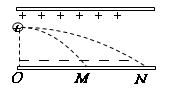 2、选择题 如图所示,带电粒子P所带的电荷量是带电粒子Q的3倍,它们以相等的速度v0从同一点出发,沿着跟电场强度垂直的方向射入匀强电场,分别打在M、? N点,若OM=MN,则P和Q的质量之比为