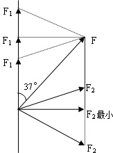 解:画出力F的分解图:如右图所示:可以看出F2有最小值,最小值为:F2=F×sin37°=3N,没有最大值,所以F2的取值范围为:3N到∞.
