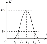 5、选择题 “蹦极”是一项刺激的极限运动,一个重为F0的运动员将一端固定的长弹性绳绑在踝关节处,从高处跳下,测得弹性绳的弹力F的大小随时间t?的变化图象如图所示.若将蹦极过程视为在竖直方向上的运动,且空气阻力不计,下列说法正确的是( )