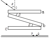 3、选择题 如图所示,a、b和c都是厚度均匀的平行玻璃板,a和b、b和c之间的夹角都为β,一细光束由红光和蓝光组成,以入射角θ从O点射入a板,且射出c板后的两束单色光射在地面上P,Q两点,由此可知(? )