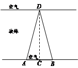 的液体的槽,槽的中部扣着一个屋脊形透明罩ADB,顶角(∠ADB)为30°,罩内为空气,整个罩子浸没在液体中。槽底AB的中点C处有一点光源,在纸面内从点光源发出的光与CD的夹角在什么范围时,光线可从液面上方射出。(液槽有足够的宽度,罩壁极薄)