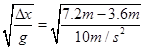 本题解析:观察图示可知,正方形格子的边长相当于3.6m,在这两个连续相等的时间内,汽车在竖直方向的距离分别为3.6m和7.2m,故根据△x=gT2,可计算出照相机连续曝光的时间间隔T=