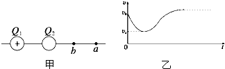 5、选择题  如图甲所示,Q1、Q2为两个固定点电荷,其中Q1带正电,它们连线的延长线上有a、b两点.一正检验电荷以一定的初速度沿直线从b点开始经a点向远处运动,其速度图象如图乙所示.则(  )