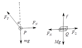 本题解析:对球P和矩形物块Q进行受力分析,如下图,设拉力与竖直方向的夹角为α,球P的质量为m,物块Q的质量为M,根据共点力平衡有,绳的拉力