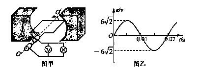 4、选择题 如图甲所示为一台小型发电机构造的示意图,线圈逆时针转动,产生的电动势随时间变化的正弦规律图象如图乙所示。发电机线圈内电阻为l.0