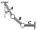 2、选择题 如图所示,用完全相同的轻弹簧A、B、C将两个相同的小球连接并悬挂,小球处于静止状态,弹簧A与竖直方向的夹角为37o(sin37o=0.6),弹簧C水平,则弹簧A、C的伸长量之比为