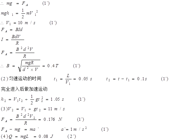参考答案:A、不论v0大小如何,粒子受到电场力与洛伦兹力不共线,则不可能平衡,因此不可能沿着1(ac方向)轨迹直线运动,故A错误; 本题解析: 本题难度:简单 3、计算题  如图20所示,一质量为m=0.016kg、长L=0.5m、宽d=0.1m、电阻R=0.1Ω的矩形线圈,从h1=5m的高处由静止开始下落,然后进入匀强磁场,当下边进入磁场时,由于磁场力的作用,线圈正好作匀速运动。(g=10m/s2) 参考答案: 本题解析: 本题难度:一般 4、选择题  安培力、电场力和洛伦兹力,下列说法正确的是(?) 参考答案:C 本题解析:电场的性质为对放入电场中的电荷具有力的作用,所以只要电荷处于电场中,就一定受到电场力作用,当粒子的运动方向和磁场方向平行时,不受洛伦兹力作用,A错误,正电荷受到的电场力和该点的电场方向相同,负电荷受到的电场力和该点的电场方向相反,电荷受到的洛伦兹力一定与磁场方向垂直,B错误,安培力和洛伦兹力的方向均可用左手定则判断,C正确,洛伦兹力方向和粒子在垂直磁场方向上的分运动垂直,所以洛伦兹力不做功,D错误, 本题难度:一般 5、简答题  如图所示,匀强电场方向竖直向下,匀强磁场方向垂直纸面向里.已知该正交电磁场区域的宽度d=8cm,带电粒子以速度v0水平向右射入该正交电磁场区域时,恰好不改变运动方向.若粒子射入时,只有电场,测得该带电粒子沿竖直方向向上偏移y1=3.2cm.不计带电粒子的重力,若粒子射入时只有磁场,试回答下列问题: 参考答案:(1)只有电场,该带电粒子沿竖直方向向上偏,即受到的电场力向上,而场强方向向下,所以带电粒子带负电. 本题解析: 本题难度:一般 |