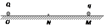 2、计算题 在真空中的光滑绝缘水平面上的O点处,固定一个带正电的小球,所带电荷量为Q,直线MN通过O点,N为OM的中点,OM的距离为d.M点处固定一个带负电的小球,所带电荷量为q,质量为m,如图所示.(静电力常量为k)
