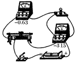 ?(  Ω) F.滑动变阻器  ?(  Ω)? G. 定值电阻  (300Ω)? H. 定值电阻  (10Ω) I. 直流电源(E=3V)? J. 电键S及导线若干?。 (1)请选择合适的器材设计实验电路,并把电路图画在方框中?(图中表明所选器材) (3)根据测量所得物理量有  =?。 参考答案::(1)如图所示 本题解析::按照伏安法测电阻的原理,用两个电流表测量待测电流表 本题难度:一般 4、简答题  ①用游标为50分度的卡尺测量某圆筒的外径时,卡尺上的示数如图1所示,可读出圆筒的外径为______?mm. 参考答案:①游标卡尺的读数为:8mm+0.02×3mm=8.06mm. 本题解析: 本题难度:一般 5、其他  如图所示,在“描绘小灯泡的伏安特性曲线”实验中,同组同学已经完成部分导线的连接,请你在实物接线图中完成余下导线的连接。 参考答案: 本题解析: 本题难度:一般 |