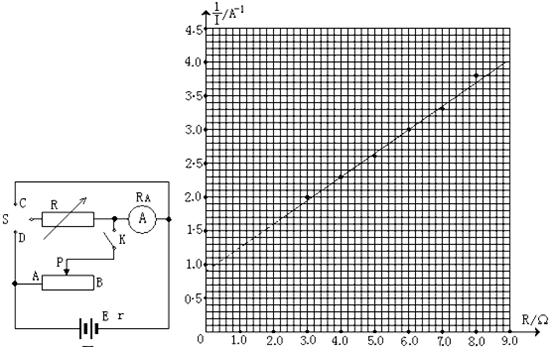 (2)测电动势和内电阻,只需得出电流值及外电阻的阻值即可;故断开电键K,将开关S与D连接,调节电阻箱R,得到多组R、I值,由闭合电路欧姆定律画出1I-R图象,由图象的斜率及截距的意义即可求得电动势和内电阻.故步骤应为: