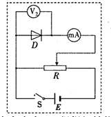 故答案为:(1)右;(2)D?F?(3)见图?(4)可能的答案:a.在二极管支路串人一阻值合适的限流电阻起保护作用.b.闭合开关前滑动触头停在最左端,向右移动滑动触头时应缓慢进行,同时仔细观察电流表示数变化,以防止电流超过25?mA(只要回答合理均可)