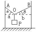 4、计算题 如图,两竖直固定杆间相距4m,轻绳系于两杆上的A、B两点,A、B间的绳长为5m。重G=80N的物体p用重力不计的光滑挂钩挂在绳上而静止,求绳中拉力T。