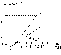 乙同学的分析过程是:从图象中得出直线A、B的斜率为:kA=tan45°=1,kB=tan26°34′=0.5,而k=,∴mA=1kg,mB=2kg