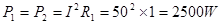 故答案为:(1)4个(2)16个(3)P1=P2="2500w" ?Pr=1250w