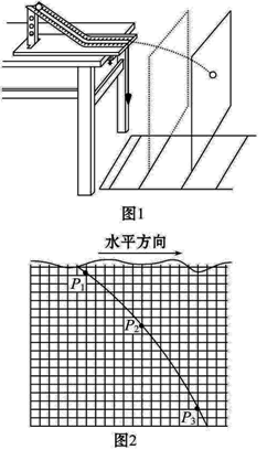 3、实验题 某同学利用如图1所示装置做“研究平抛运动”的实验,根据实验结果在坐标纸上描出了小球水平抛出后的运动轨迹,但不慎将画有轨迹图线的坐标纸丢失了一部分,剩余部分如图2所示.图2中水平方向与竖直方向每小格的长度均代表0.10 m,P1、P2和P3是轨迹图线上的3个点,P1、P2和P3之间的水平距离相等.完成下列填空:(重力加速度取9.8m/s2)