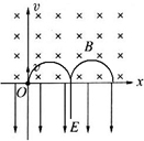 1、计算题  (12分)如图所示,在x轴上方有垂直于x0y平面向里的匀强磁场,磁感应强度为B。在x轴下方有沿y轴负方向的匀强电场,场强为E,一质量为m,电荷量为-q的粒子从坐标原点沿着y轴正方向射出,射出之后,第三次到达x轴时,它与点O的距离为L,不计粒子所受重力。求:
