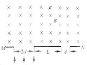 2、选择题 利用如图所示装置可以选择一定速度范围内的带电粒子。图中板MN上方是磁感应强度大小为B、方向垂直纸面向里的匀强磁场,板上有两条宽度分别为2d和d的缝,两缝近端相距为L。一群质量为m、电荷量为q,具有不同速度的粒子从宽度为2d的缝垂直于板MN进入磁场,对于能够从宽度为d的缝射出的粒子,下列说法正确的是( )