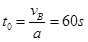 解得t1=20s或60s,因为B停止的时间为