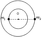 4、计算题 两个靠得很近的天体,离其它天体非常遥远,它们以其连线上某一点O为圆心各自做匀速圆周运动,两者的距离保持不变,科学家把这样的两个天体称为“双星”,如图所示。已知双星的质量为m1和m2,它们之间的距离为L。求双星运行轨道半径r1和r2,以及运行的周期T。