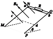 5、计算题 如图所示,MN、PQ为间距L=0.5m足够长的平行导轨,NQ⊥MN。导轨平面与水平面间的夹角θ=37°,NQ间连接有一个R=5Ω的电阻。有一匀强磁场垂直于导轨平面,磁感应强度为B0=1T。将一根质量为m=0.05kg的金属棒ab紧靠NQ放置在导轨上,且与导轨接触良好,导轨与金属棒的电阻均不计。现由静止释放金属棒,金属棒沿导轨向下运动过程中始终与NQ平行。已知金属棒与导轨间的动摩擦因数μ=0.5,当金属棒滑行至cd处时已经达到稳定速度,cd距离NQ为s=2m。试解答以下问题:(g=10m/s2,sin37°=0.6,cos37°=0.8)