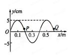 ,0.5m处的波峰向右传播到Q点,Q点振动到波峰,由