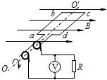 ![]() 参考答案:将交流与直流通过阻值都为R的电阻,设直流电流为I,则根据有效值的定义有: 本题解析: 本题难度:简单 2、选择题 如图所示为小型旋转电枢式交流发电机的原理图,其矩形线圈在磁感应强度为B的匀强磁场中绕垂直于磁场方向的固定轴OO′以角速度ω匀速转动,线圈的面积为S、匝数为n、线圈总电阻为r,线圈的两端经集流环和电刷与电阻R连接,与电阻R并联的交流电压表为理想电表.?在t=0时刻,线圈平面与磁场方向平行(如图所示),则下列说法正确的是( ? ) |